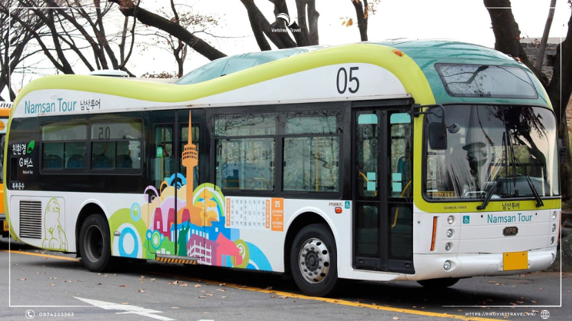 - Xe buýt: bạn có thể đi xe buýt đến trước Seoul Tower Plaza. Từ ga Myeongdong , bạn có thể sử dụng Dịch vụ Xe Buýt Đưa Đón hàng nửa giờ (hoạt động từ 12:00 - 20:30) đến Ga Cáp treo Namsan.
