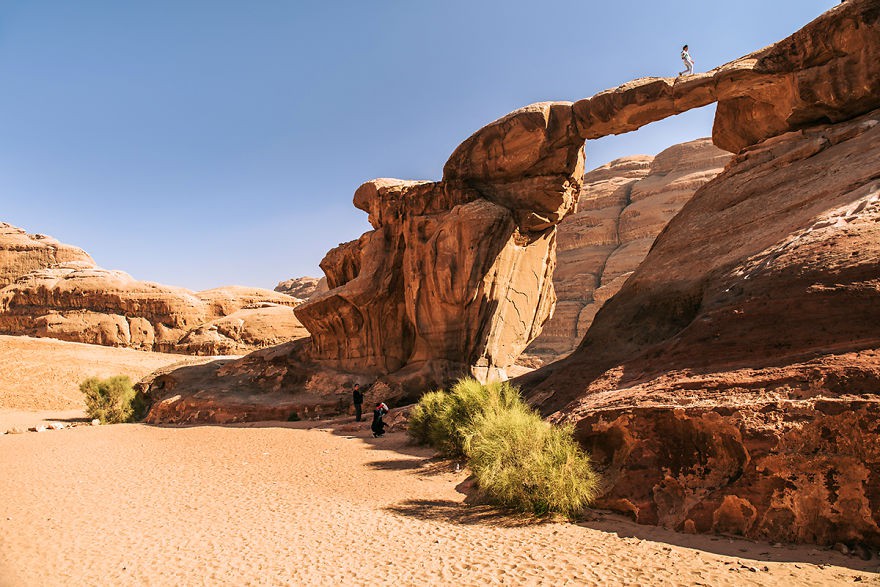 Một điểm phải đến ở Wadi Rum là những cây cầu đá tự nhiên, trong đó có cây cầu Burdah cao 35m, cây cầu đá được xem là một trong những vòm tự nhiên cao nhất thế giới, chỉ cần có sức khỏe là bạn có thể trèo tận đỉnh.