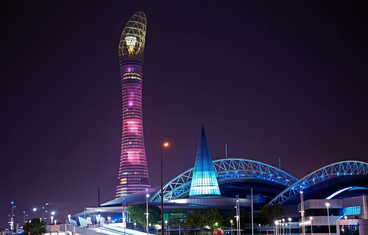 Tòa tháp Aspire Qatar bên cạnh sân bận động Khalifa