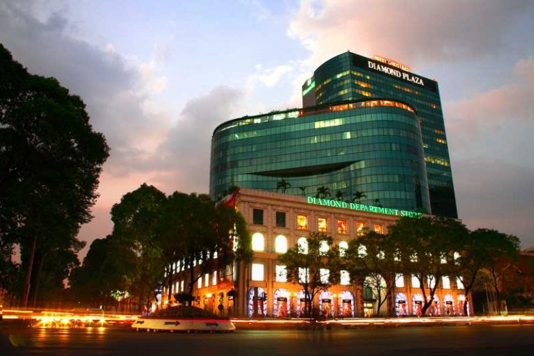 Được biết đến là trung tâm thương mại đầu tiên của Hồ Chí Minh được thành lập vào năm 1999, đến đây bạn có thể trải nghiệm cùng khám phá, trải nghiệm những thú vui tại đây, là trung tâm thương mại lớn có các chuỗi cửa hàng ăn nhanh, coffee với chất lượng “sạch sẽ” theo đúng yêu cầu khá khắt khe của các du khách nước ngoài. Ngoài ra, việc mua sắm tại trung tâm thương mại này cũng rõ ràng hơn khi hầu hết toàn bộ các sản phẩm đều được quy định giá chuẩn. Trung tâm thương mại Diamond Plaza là một trong những địa điểm nổi tiếng ở quận 1, đừng bỏ lỡ cơ hội trải nghiệm tại đây nhé.