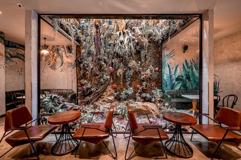 Khoái nhất là cái vụ cà phê đẹp máy lạnh kính tự nhiên có nguyên mảng xanh bài trí theo style going to the forest tạo cảm giác nhẹ nhàng thư thái như đang ở vườn yêu. Nhâm nhi chút trà chiều, làm dăm ba miếng bánh trong không gian ấm cúng, những cuộc trò chuyện dường như thi vị hơn rất nhiều.
