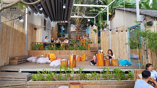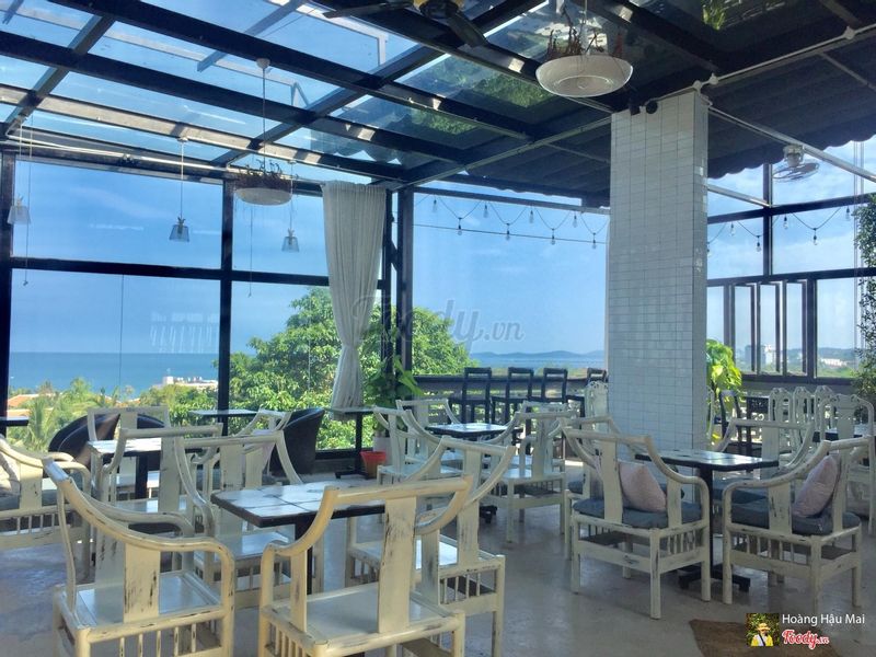Quán cafe nằm ở vị trí vô cùng đắc địa đó là sát biển, nơi đây là địa điểm được săn đón đề ngắm bình minh và hoàng hôn đẹp nhất tại Phú Quốc. Quán được thiết kế rất nhiều cây xanh, rộng rãi và thoáng mát, tuy nhiên mức giá ở đây khá cao.