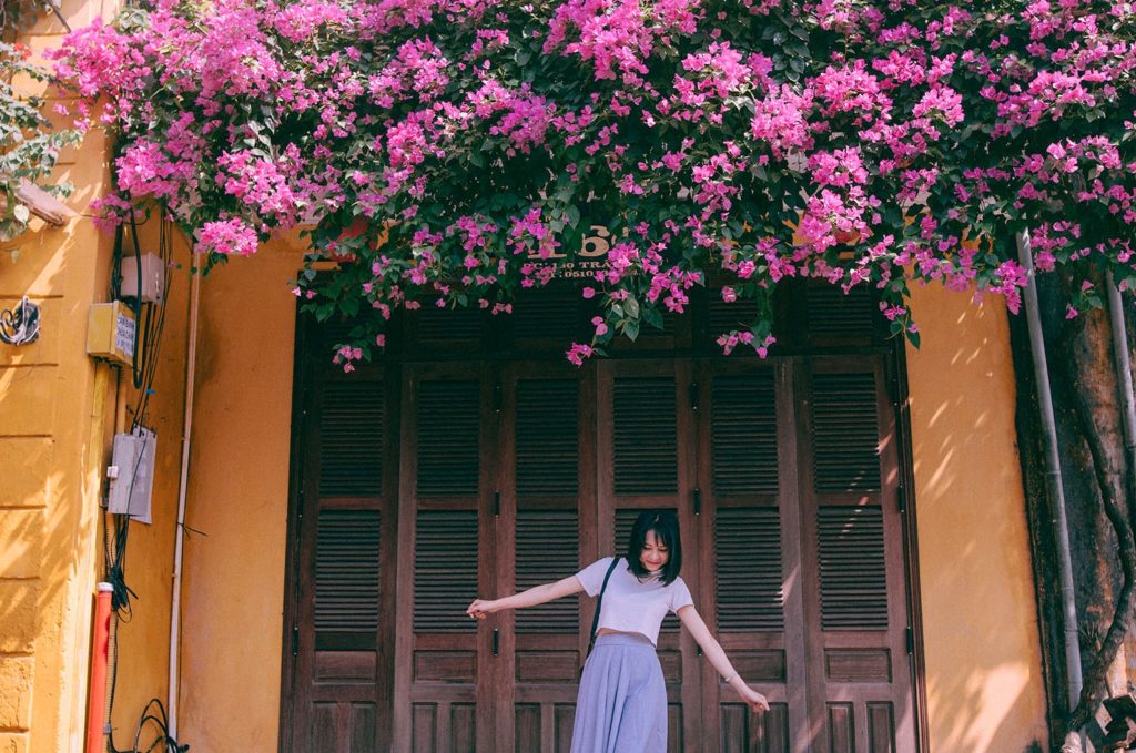 Mặc một bộ đồ thật đẹp check in dưới dàn hoa giấy