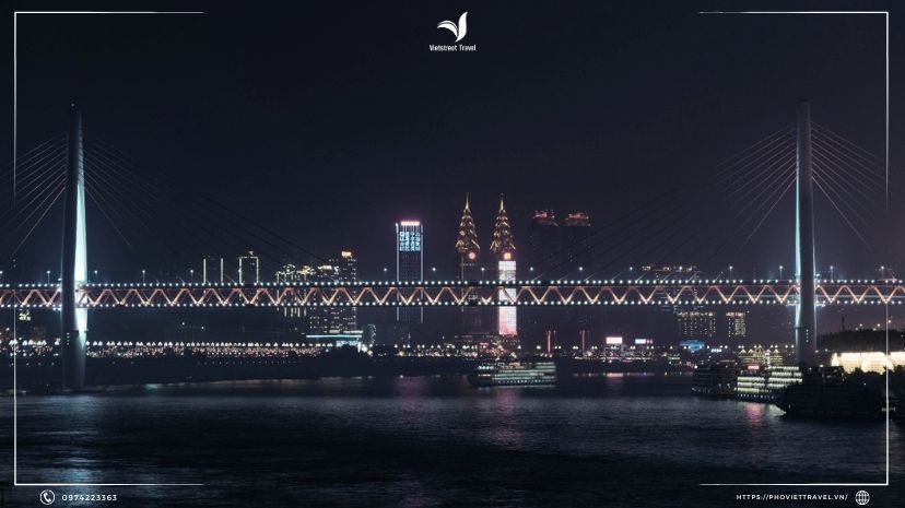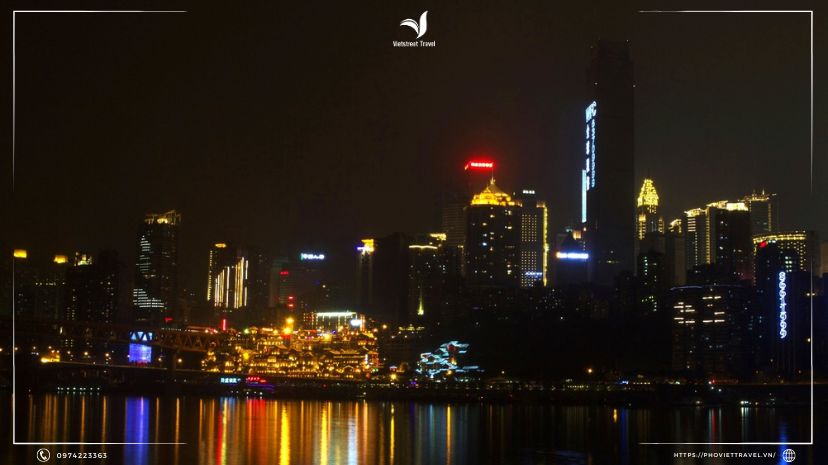 Điều đặc biệt là vào buổi tối, Hồng Nhai Động được thắp sáng bởi những ánh đèn ấm áp. Ánh sáng tạo nên không gian lãng mạn và tinh tế, soi bóng xuống mặt nước như một khu chợ nổi giữa các tòa nhà chót vót. Điều này tạo ra một khung cảnh lôi cuốn và thơ mộng, khiến du khách chiêm ngưỡng khác nhau từ nhiều góc độ.