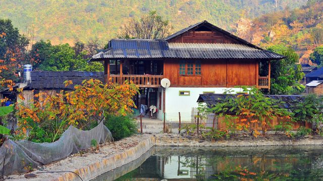 Mùa nào cũng vậy, khi đến với Ngọc Chiến, du khách sẽ cảm nhận được ngay một gam màu trầm, màu trầm của sự an nhiên, tĩnh lặng cuộc sống bình yên nơi đây. Điểm đặc biệt của Ngọc Chiến đó chính là hàng trăm nóc nhà đều được làm bằng gỗ Pơ Mu - một loại gỗ cực kỳ quý, có độ bền bỉ lên tới hàng chục năm. Từ đầu xã đến cuối xã, từng ngôi nhà sàn nằm nối tiếp nhau, ngả màu rêu xanh bởi được phơi sương, phơi nắng qua thời gian dài.