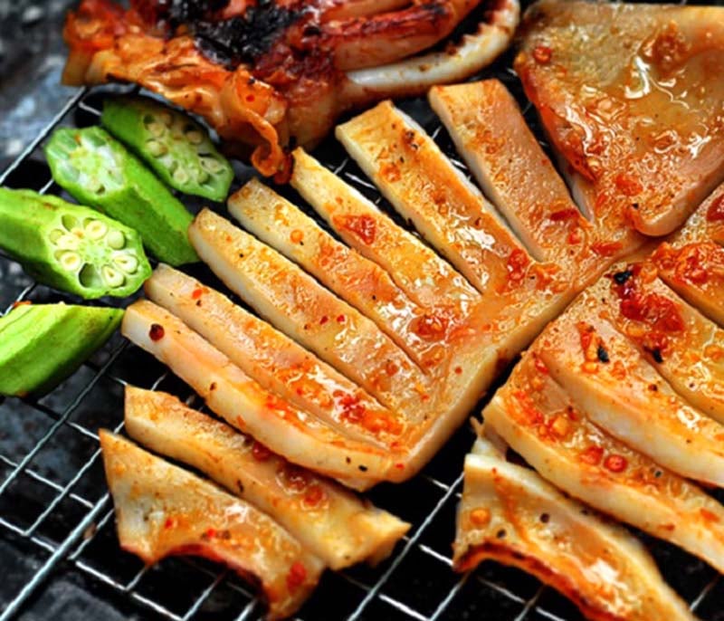 Du khách có thể mua những đặc sản của Đà Nẵng như: Mực một nắng, bánh khô mè, vải may áo dài…